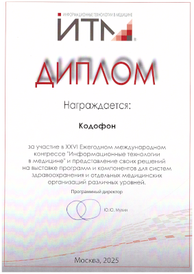 10-11 октября 2024 г. в конгресс-центре гоcтиницы "Космос" (г. Москва) представители группы компаний "Кодофон" приняли участие в специализированной выставке в рамках XXV ежегодного международного конгресса "Информационные технологии в медицине".